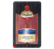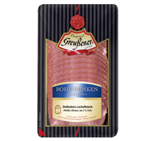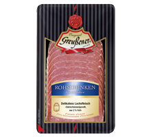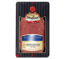 Greußener Roh- und Kochschinken garantieren einzigartige Geschmackserlebnisse. Schwein, Rind, Lamm, Wildschwein und Hirsch bilden hochwertigste Grundlagen für ausgesuchte Schinken-Spezialitäten. Saftiger Kochschinken und feinster Rohschinken - z.T. monatelang luftgetrocknet und mit Buchenholzrauch gereift - laden ein zum herzhaften Greußener-Genuss!Lachsfleisch Pfeffer-Zitrone, nur 2% Fett